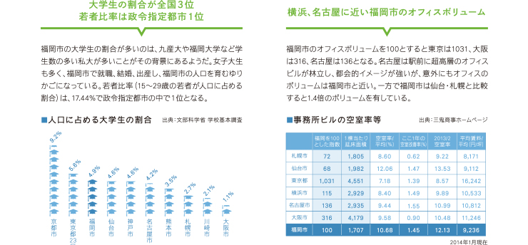 また、人口に占める大学生の割合が多いのも福岡市の大きな特徴です。